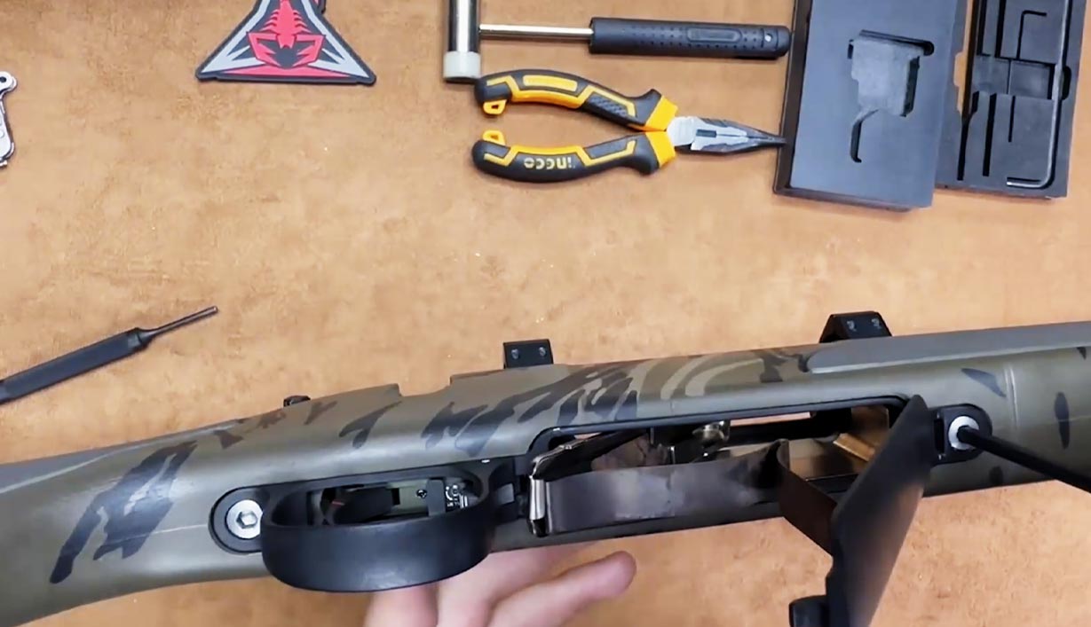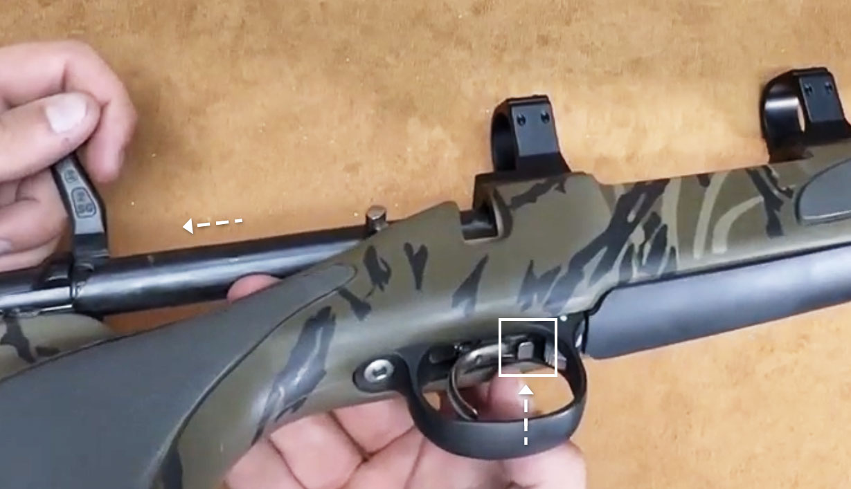 - Move the safety into the off position, cycle the action, and pull the trigger. The trigger and firing pin should move.