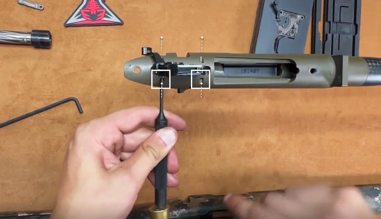 - Move the safety into the off position, cycle the action, and tap the stock. The firing pin should NOT move.