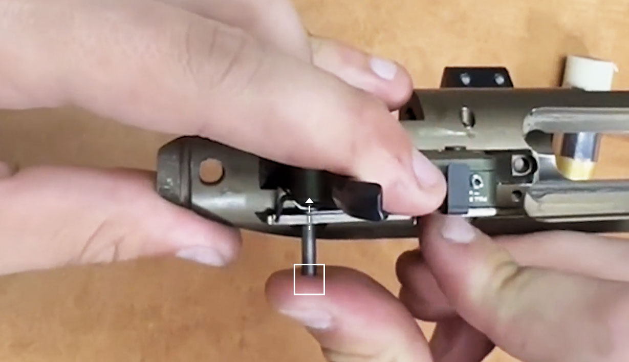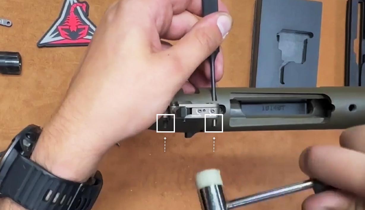 Insert and gently punch in the rear trigger pin until it is flush.