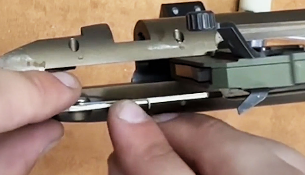Flip the rifle over so you’re looking at the bottom.