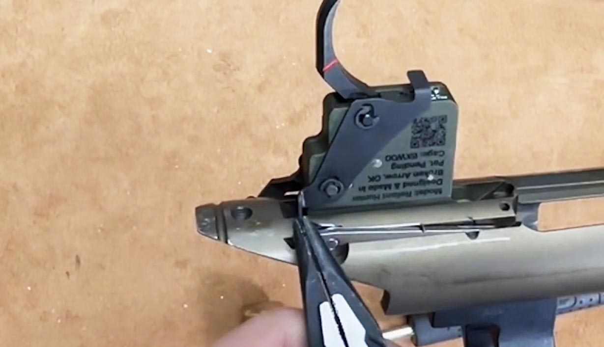 Using the included punch, punch out the front pin (the pin closest to the barrel) from right to left and set it aside.